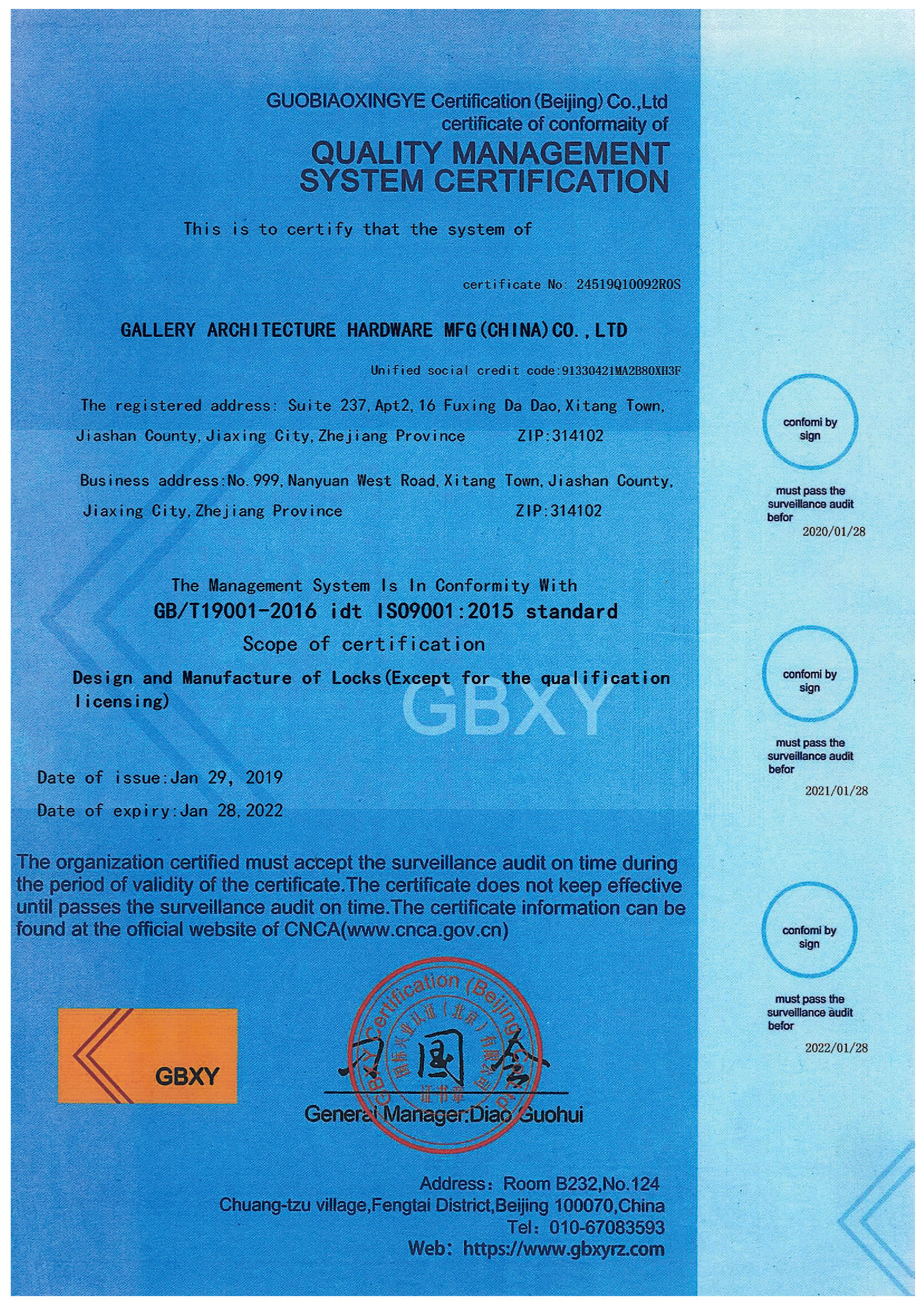 浙江堅(jiān)迪五金制造有限公司始建于 1995 年。自 2003 開始,公司致力于高標(biāo)準(zhǔn)商業(yè)鎖的研發(fā)工作,并于 2006 及 2007 年,8700 插芯鎖系列獲得美國(guó)國(guó)家標(biāo)準(zhǔn) ANSI A 156.13-2005 一級(jí)、ANSI A 156.2-2003 二級(jí)和美國(guó) UL 10C3 小時(shí)防火測(cè)試認(rèn)證。自 1998 年以來,公司不斷提升產(chǎn)品和客戶服務(wù)品質(zhì),并獲得了 ISO 9001 的認(rèn)證。